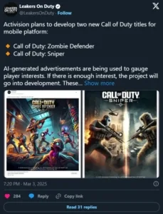 Informasi ini pertama kali mencuat dari akun Twitter/X @LeakersOnDuty, yang melaporkan bahwa Activision telah merilis iklan terkait kedua game ini di media sosialnya. Namun, alih-alih membawa pemain langsung ke halaman unduhan, tombol “Download” dalam iklan justru mengarahkan mereka ke sebuah survei untuk memberikan feedback. Selain itu, materi promosi yang digunakan dalam iklan tersebut tampaknya dibuat menggunakan AI-generated images untuk memberikan gambaran awal tentang konsep game yang akan ditawarkan.