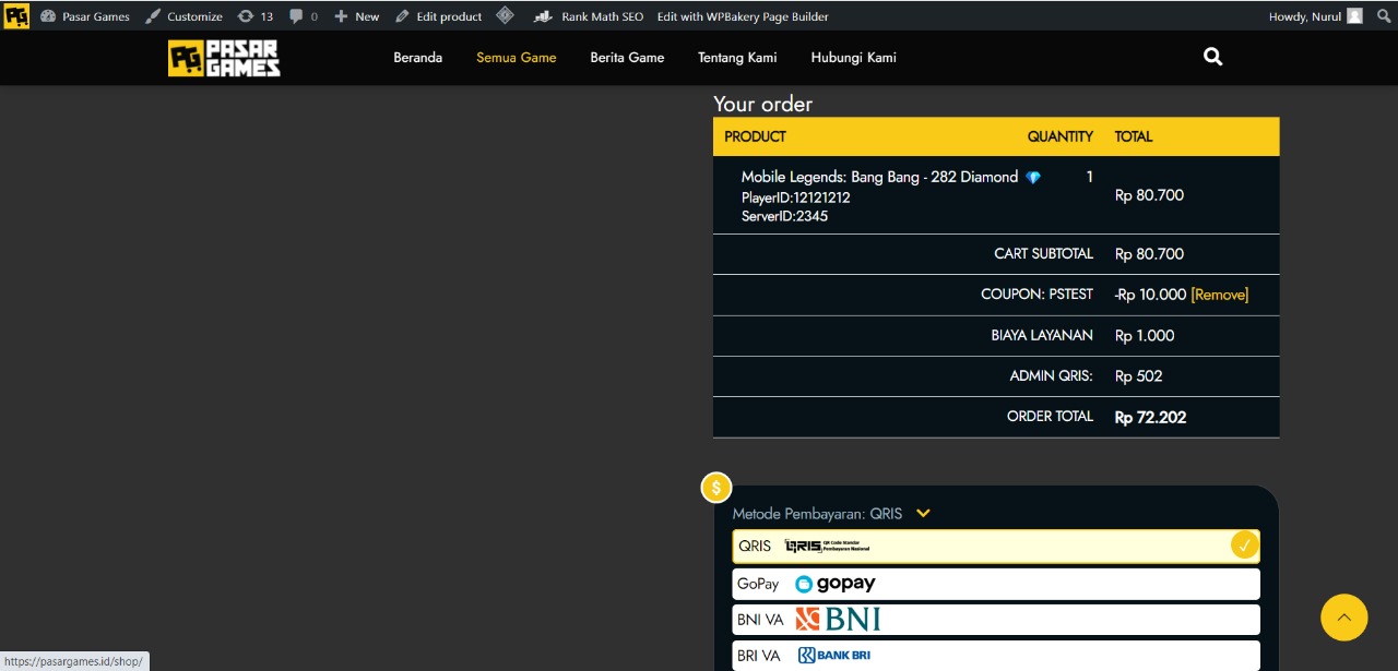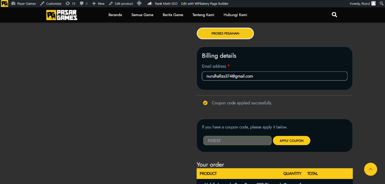 Hasil dari penerapan kode tersebut akan ditampilkan secara rinci pada detail pesanan produk.