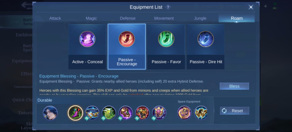 Untuk Battle Spell, pilih Petrify agar bisa menahan musuh lebih lama dan dikombinasikan dengan Passive atau Ultimate. Jika menghadapi banyak Crowd Control, gunakan Purify sebagai alternatif.