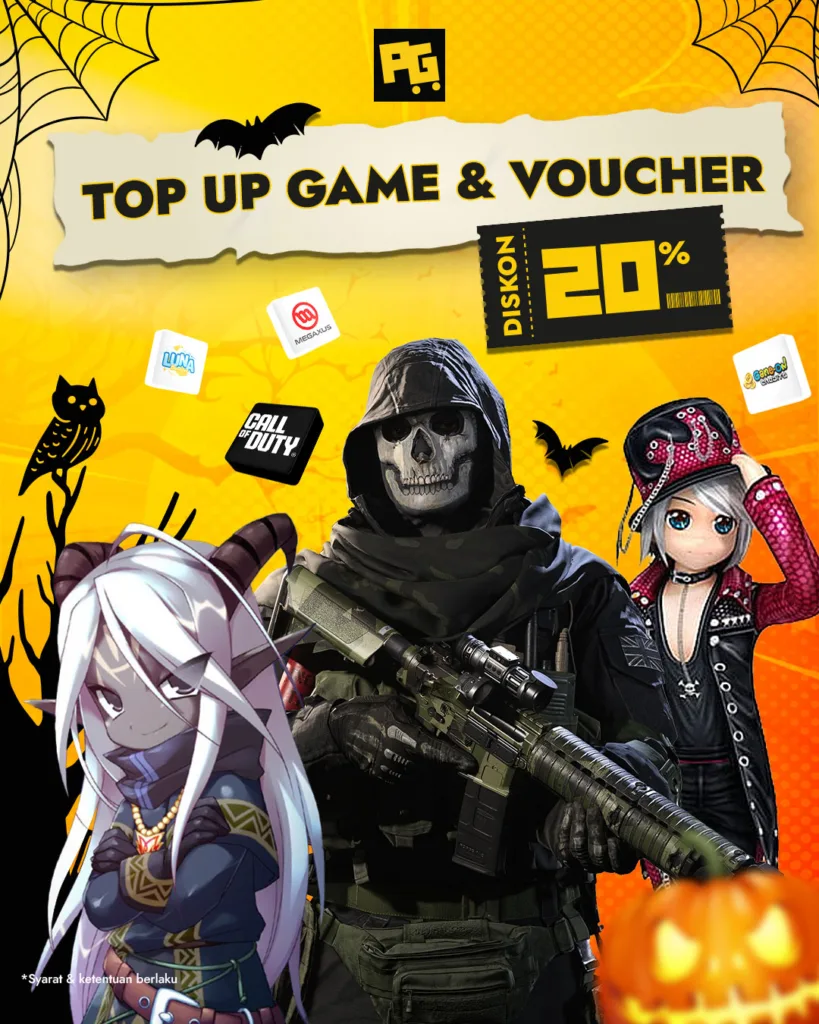 - Maksimal Diskon Produk Top Up Game Rp10,000 dan Voucher Rp20,000.
