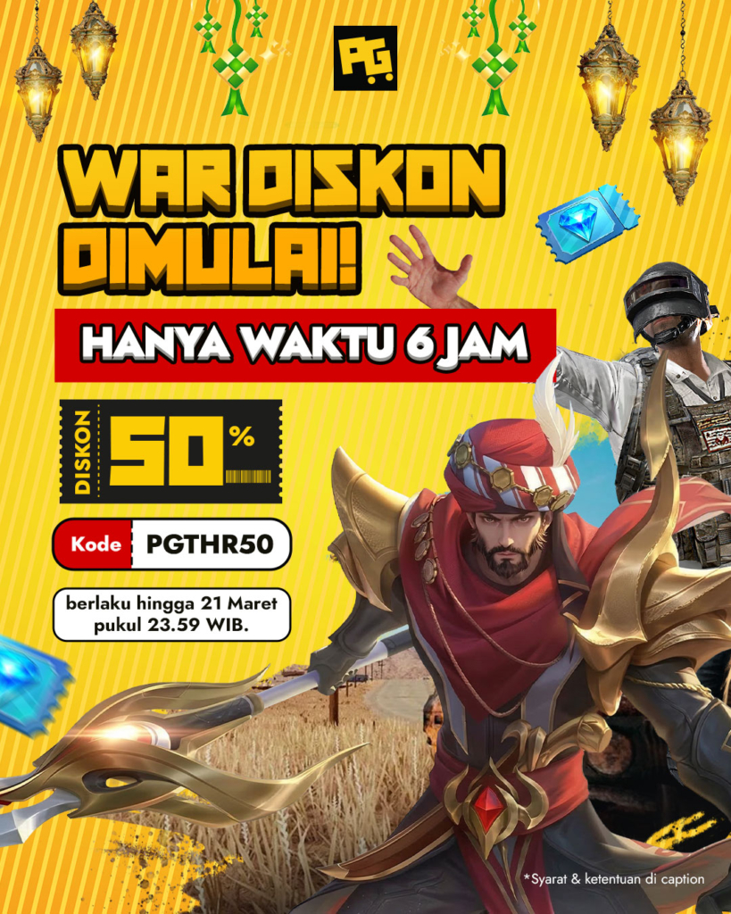 Spesial hari Lebaran 2026 ini, PasarGames bakal bagi-bagi diskon 50% untuk semua produk! Kamu bisa top up diamond, CP, UC, isi voucher, atau langganan TrendMicro buat keamanan device kamu!