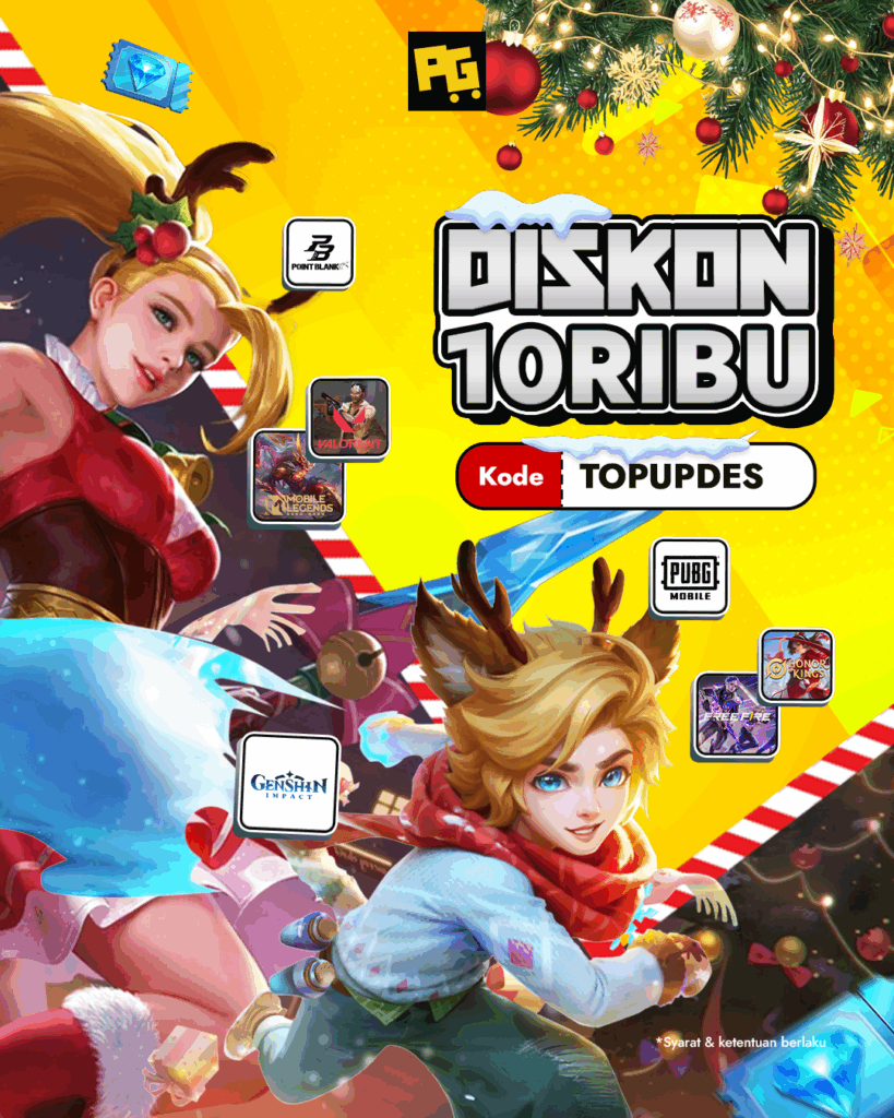 Halo sobat PasarGames! Kali ini ada diskon spesial Rp10ribu untuk Top Up Free Fire, Mobile Legends: Bang Bang, Point Blank, PUBG, VALORANT, Honor of Kings, Genshin Impact. Berlaku hingga 31 Desember 2025. Yuk, segera!