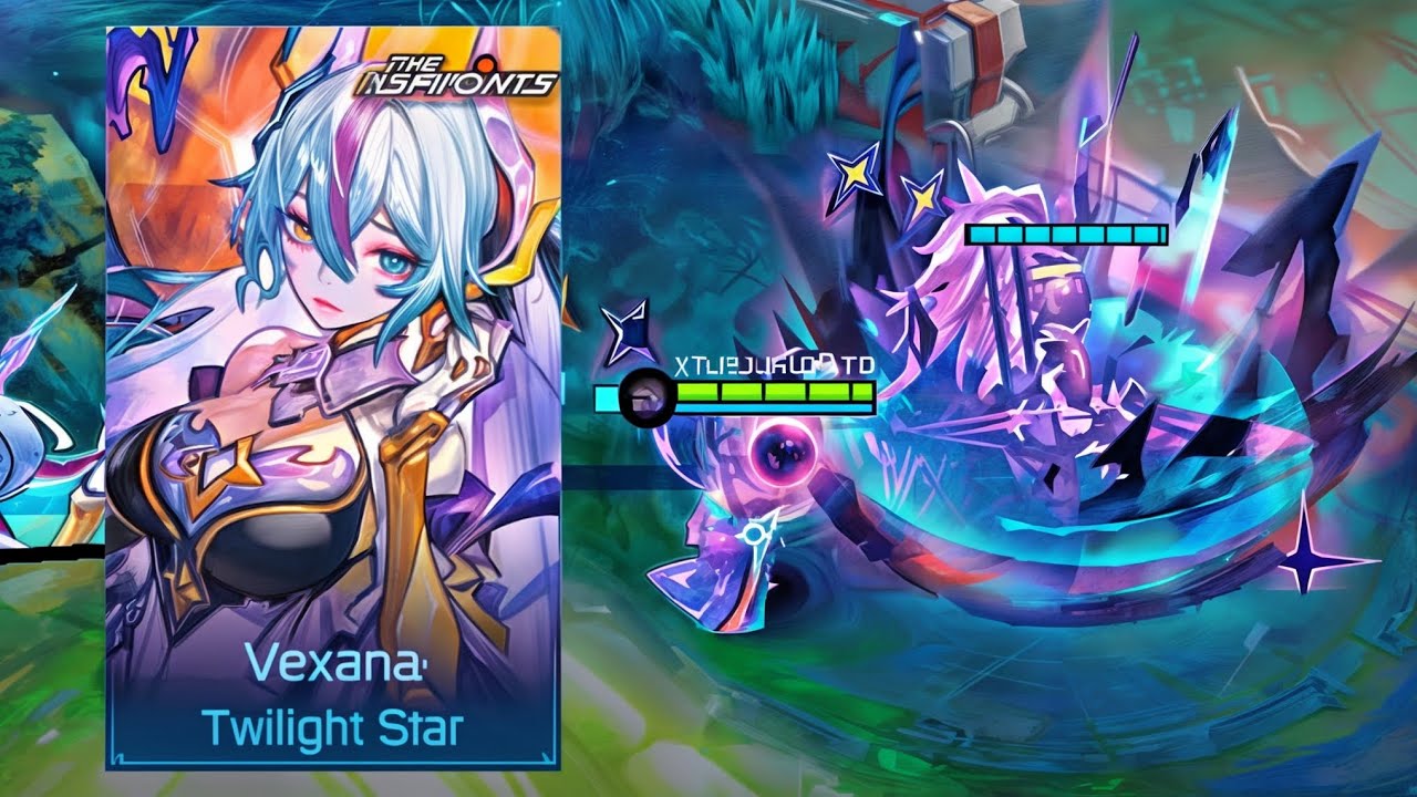Vexana – Twilight Star, yaitu tema bintang malam penuh misteri, sesuai nama skin-nya. Pada efek visual skill-nya terlihat menakutkan namun indah, seolah ada galaksi dalam setiap serangan. Skin ini bisa jadi pilihan sempurna untuk pemain yang ingin tetap tampil menawan meski dalam aura gelap di Land of Dawn.